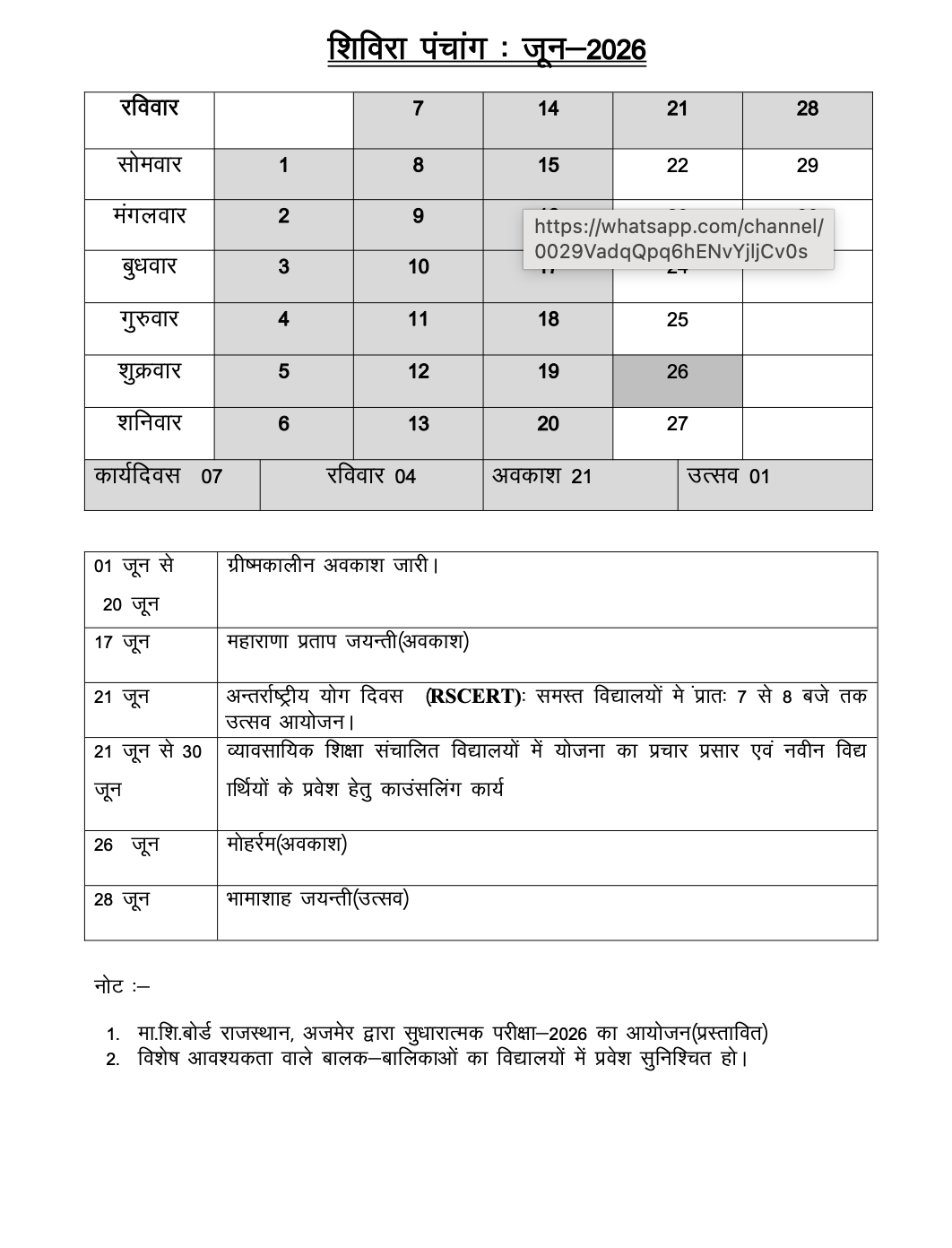 यह पेज Shivira Panchang June 2026, राजस्थान स्कूल कैलेंडर, जून 2026 अवकाश सूची, कार्यदिवस, उत्सव और प्रशासनिक कार्यक्रमों को एक ही स्थान पर प्रस्तुत करता है।