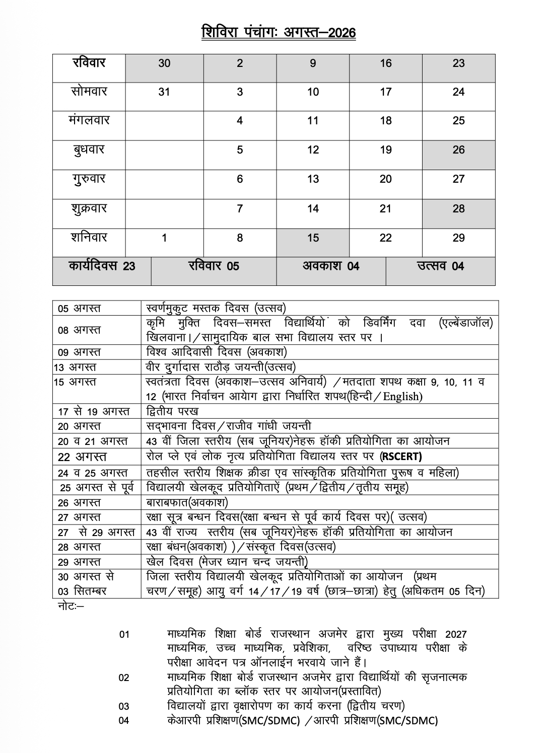 अगस्त 2026 के लिए महत्वपूर्ण प्रशासनिक निर्देश